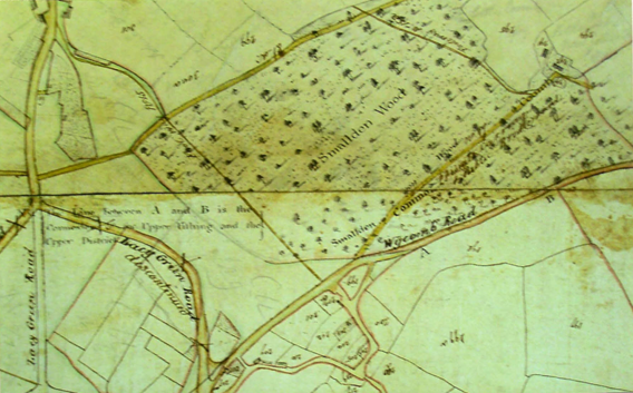 Section of map of 1811 indicating Smallden Wood and Common and the old Wycombe Road (now Little Lane and Lower Road).